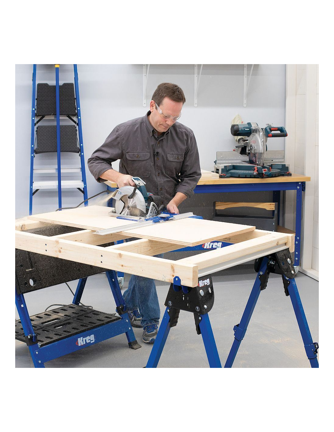 Versatile, stable and expandable. The "little brother" of the multifunctional workbench KWS1000 from Kreg is waiting for you with a number of smart solutions. It is not only a workhorse, but can be transformed in no time into a workbench, a Sawing station, a Kreg drilling station, clamping table and for many other applications.